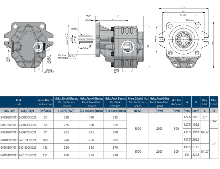 Насос шестеренний GANİ, серія 40 (монтажний фланець стандарту SAE C, вал зі шпонкою, 2+ 4 отвори) призначено для подавання робочої рідини, він належить до гідравлічних вузлів, що найчастіше використовуються в гідравлічних системах мобільних машин, та відповідає світовим стандартам.