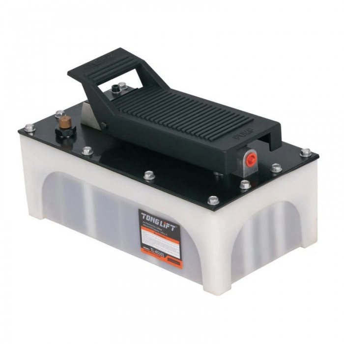 Насос працює за принципом перетворення енергії стисненого повітря в гідравлічний тиск. Під час натискання педалі повітря надходить у пневмокамеру, рухаючи поршень, який нагнітає робочу рідину в систему. Це забезпечує плавний контроль, високу силу натиску і мінімальні витрати енергії.