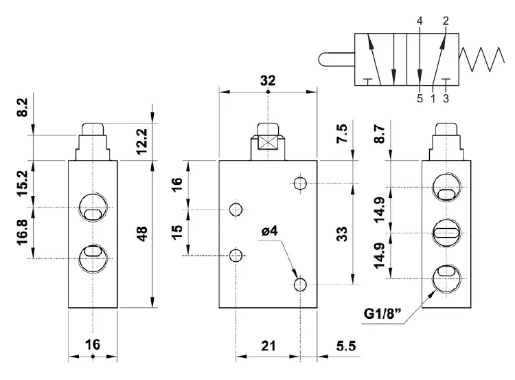 Пневморозподільник 03V G0 5 00 02 з механічним керуванням призначено для керування потоком стисненого повітря в пневматичних приводах.