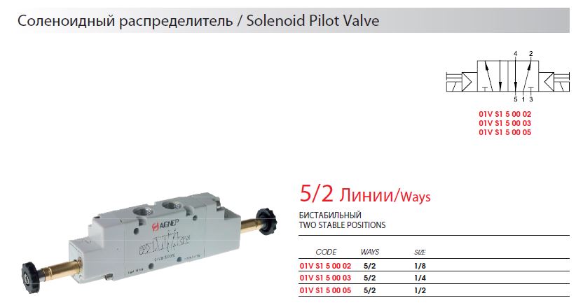 Пневморозподільник 5/2 (бістабільний) з електропневматичним одностороннім керуванням призначений для керування потоком стисненого повітря в пневмоприводах різного призначення.