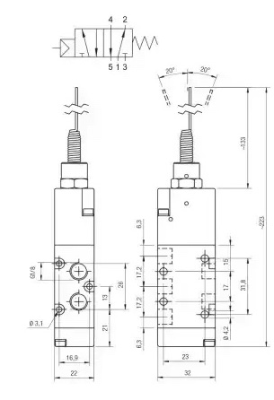 Пневморозподільник 01V N0 5 00 02 з електропневматични керуванням призначено для керування потоком стисненого повітря в пневматичних приводах.